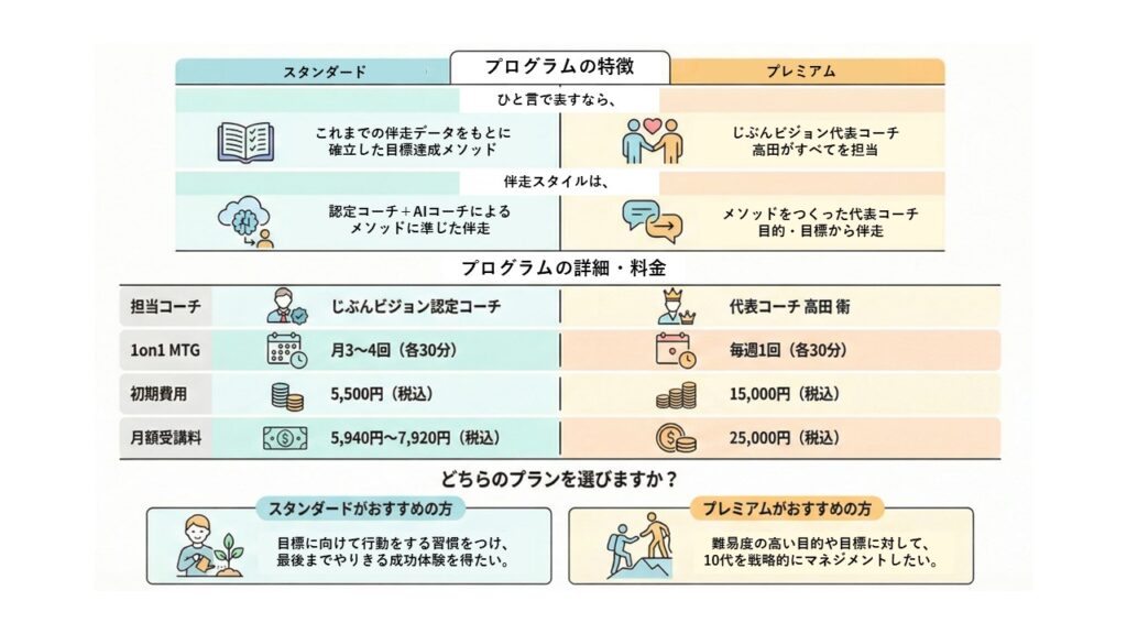 新プログラム「じぶんビジョンスタンダード」のリリースによって、既存のじぶんビジョンの名称をじぶんビジョンプレミアムに変更いたします。(2026年2月末現在、満員となっております。)
